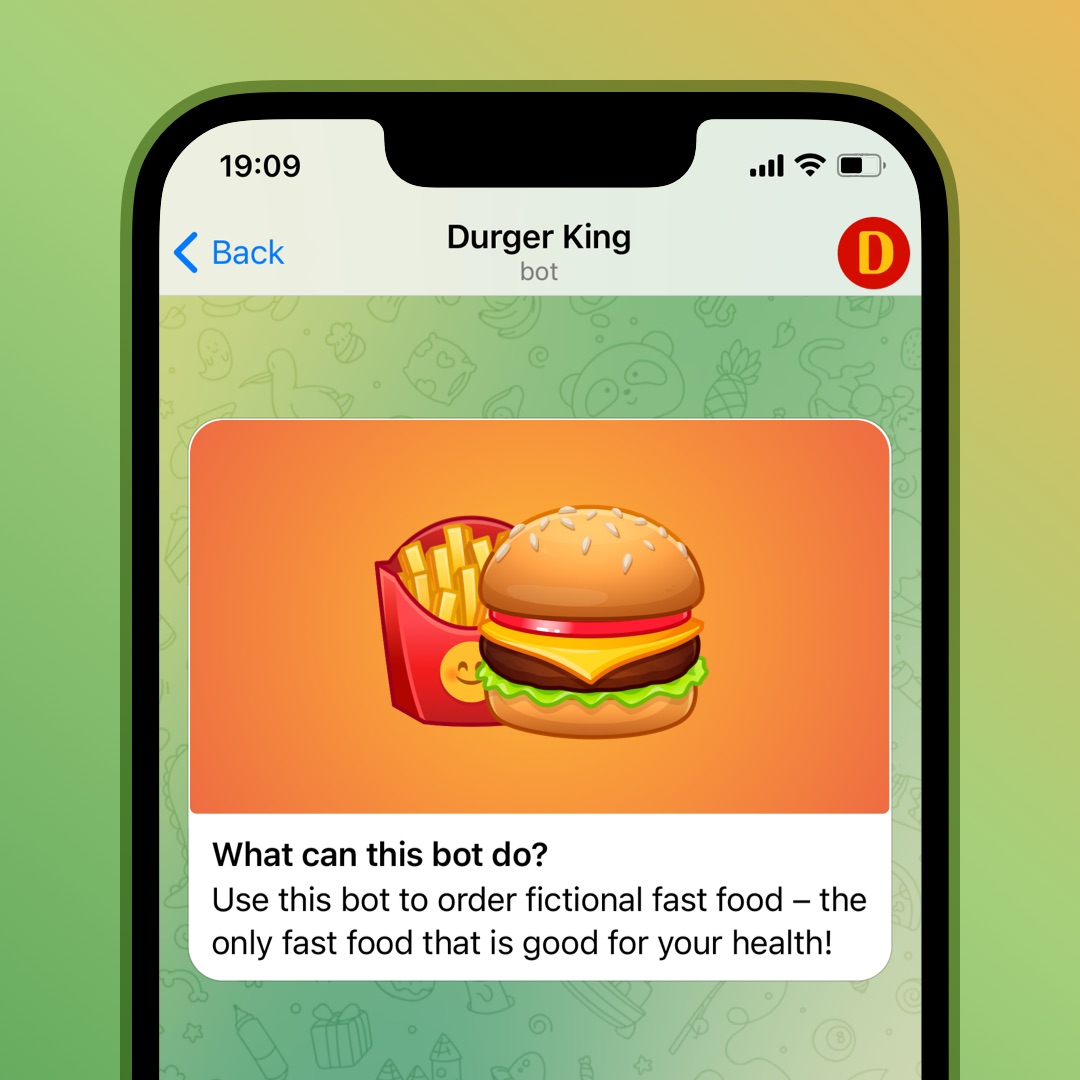 Telegramdagi botlar soʻrovnomalar olish, toʻlovlarni qabul qilish va hatto butun veb-saytlar oʻrnini egallashga yordam beradi. Bot dasturchilari endi funksiyalarini namoyish qilish uchun Bu bot nimalar qila oladi? boʻlimiga surat yoki video qoʻshishi mumkin.