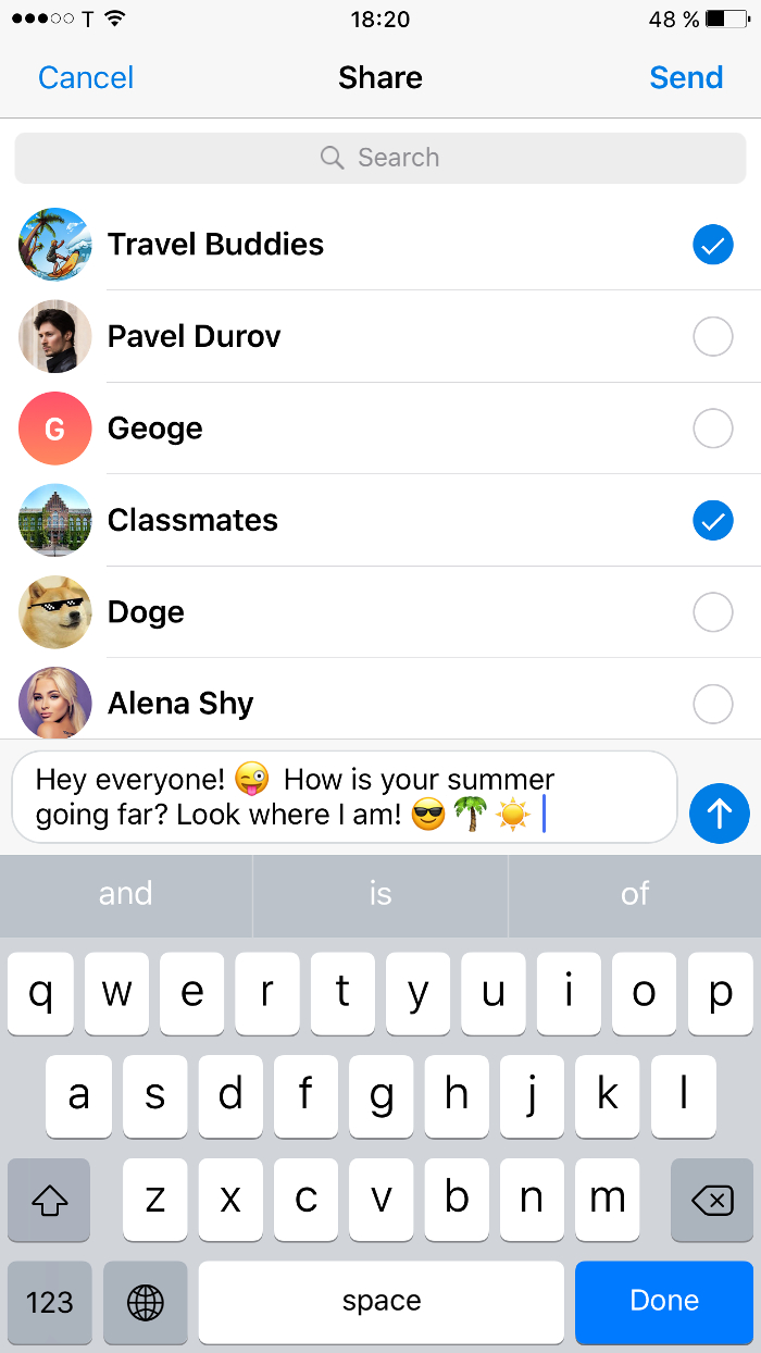In other news, Telegram 4.1 for iOS brings you an improved sharing extension. When sharing stuff from other apps to Telegram you can add an optional comment and select multiple recipients easily. 3D Touch on the app icon to see some new actions, including taking a photo/video and sending it to multiple recipients.