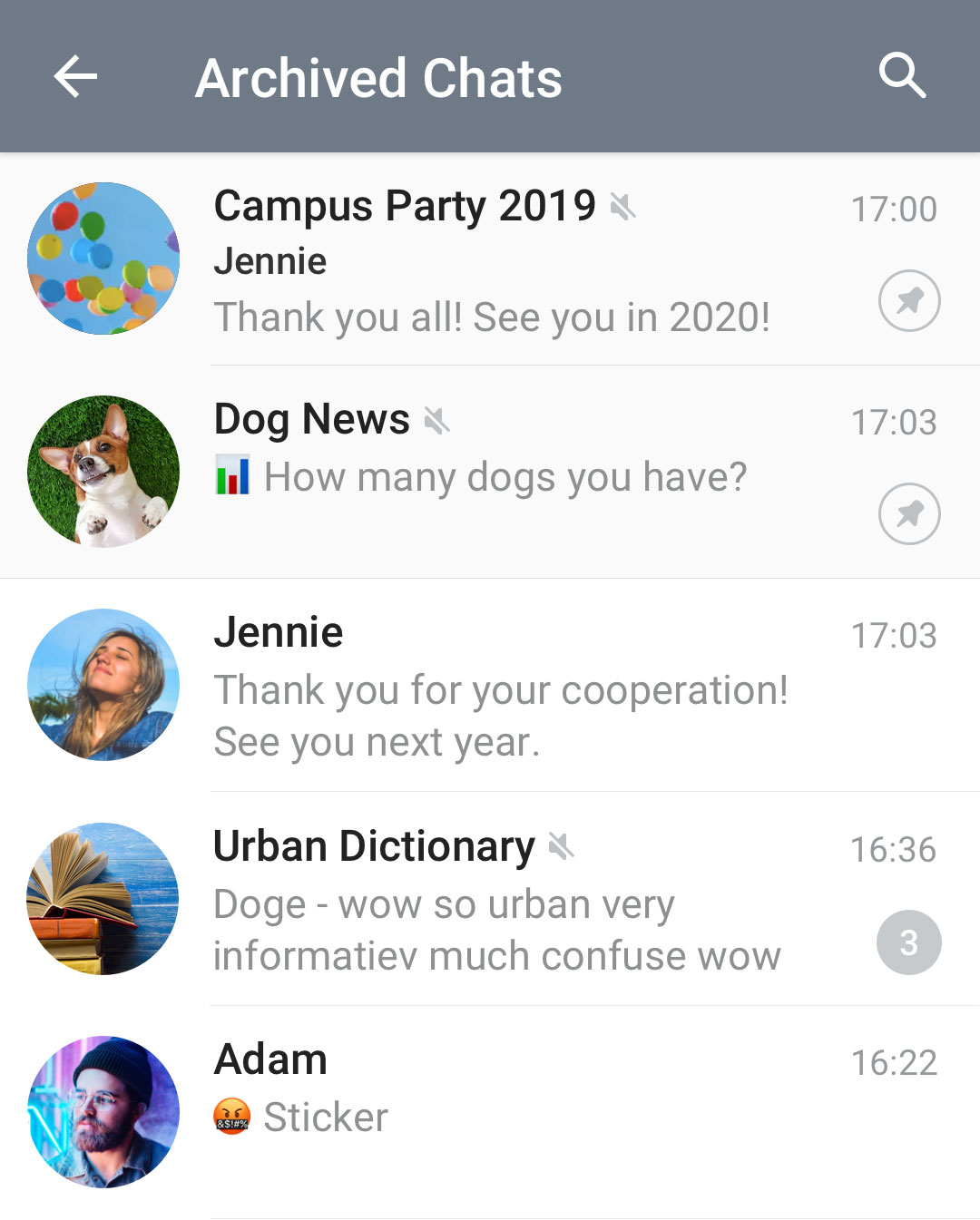 Pinned chats in the archive