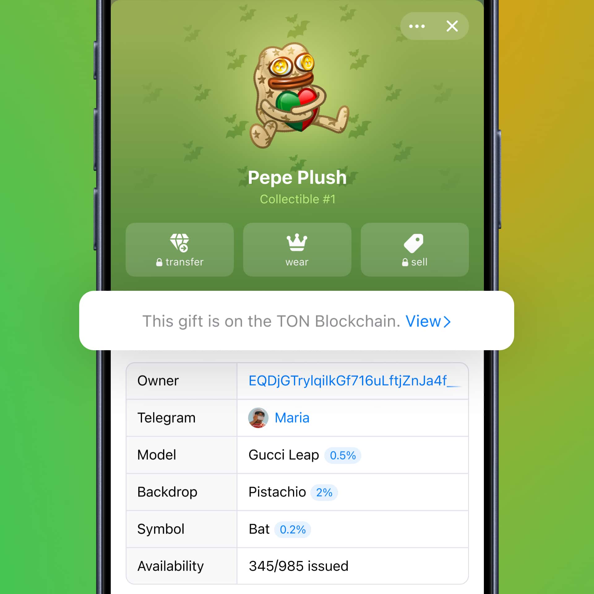 Users can move their gifts to the blockchain for maximum security. Starting today, if you connect your account to Fragment, you can showcase your blockchain gifts on your Telegram profile.
