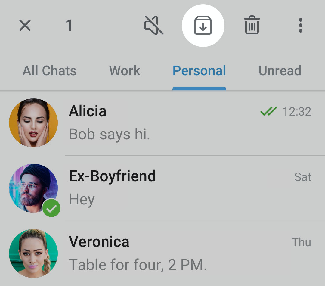 Se avete troppe chat, ora puoi separare il divertimento dal lavoro, o gli affari di famiglia da quelli scolastici - quindi scorri tra le schede per accedere rapidamente a qualsiasi tua chat.