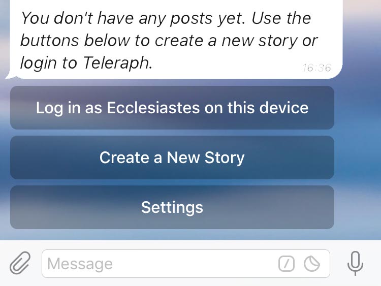 If you have created some Telegraph posts in the past using browsers on your different devices, the @Telegraph bot helps unite them all under your rule.