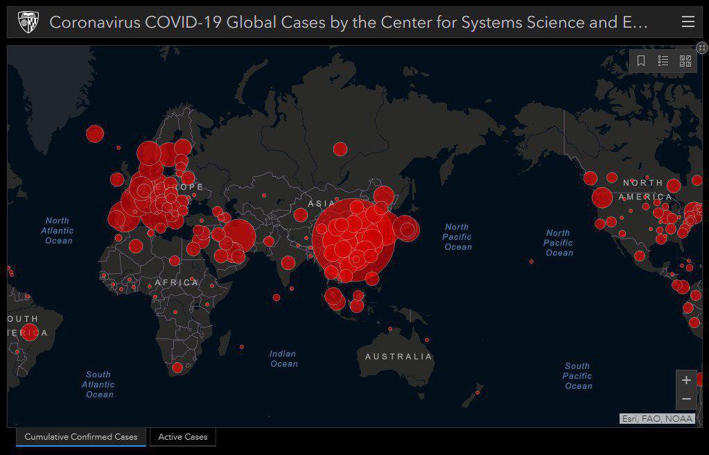 Koronavirus qayerda qanchalik tarqalganligini ko'rsatib turuvchi onlayn servis 👇