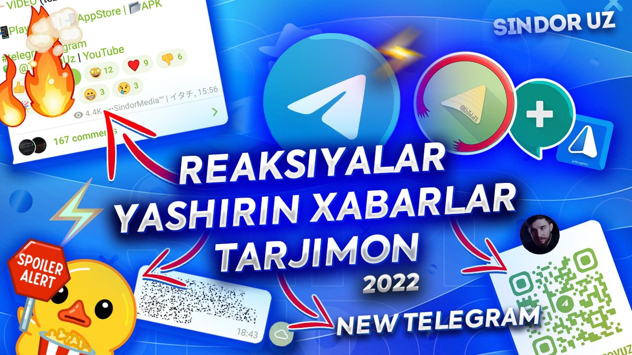 Reaksiyalar, yashirin matn, tarjima va QR kodlar.