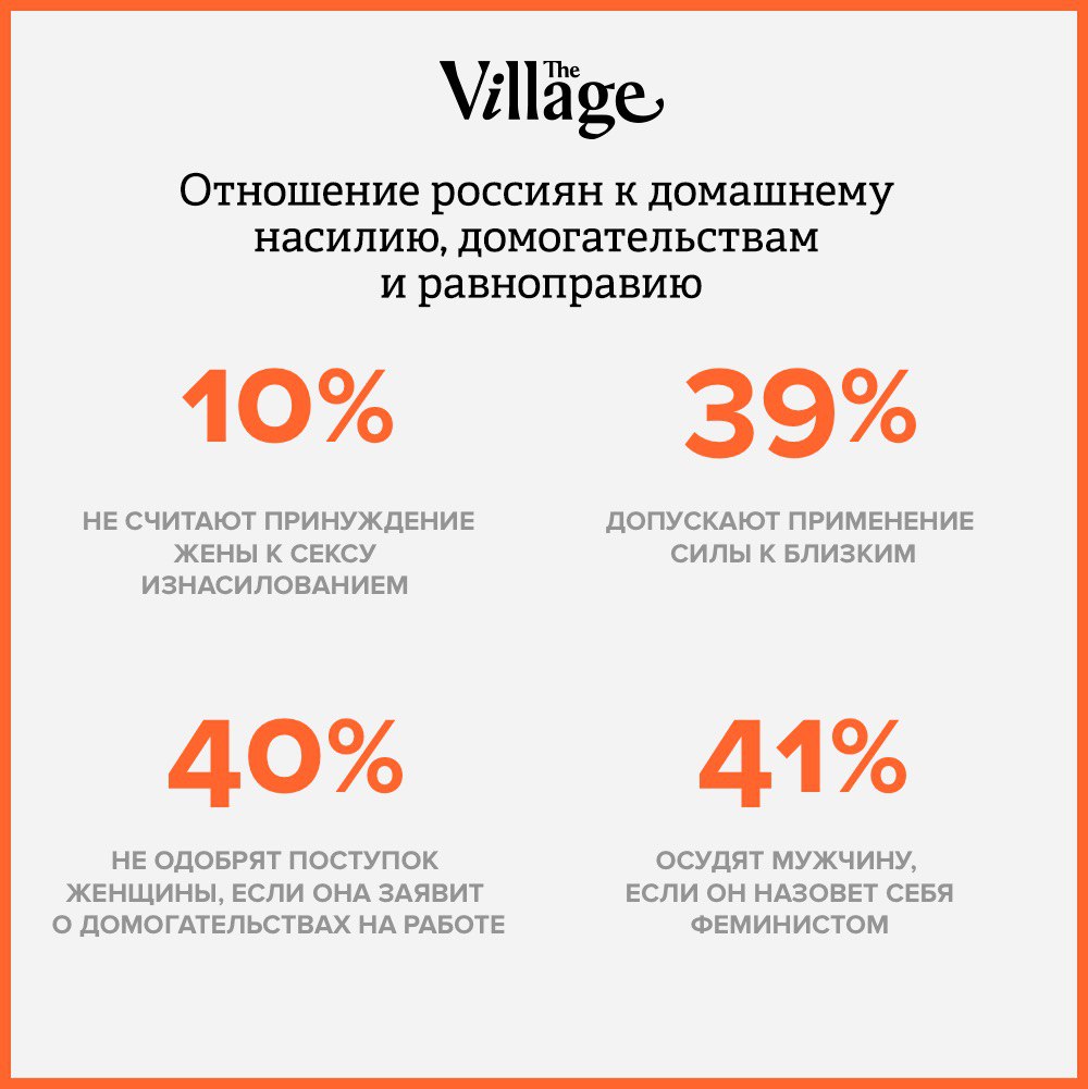 Три четверти россиян высказываются за равноправие в семье, но многие все равно дают неутешительные ответы о домогательствах на работе и домашнем насилии