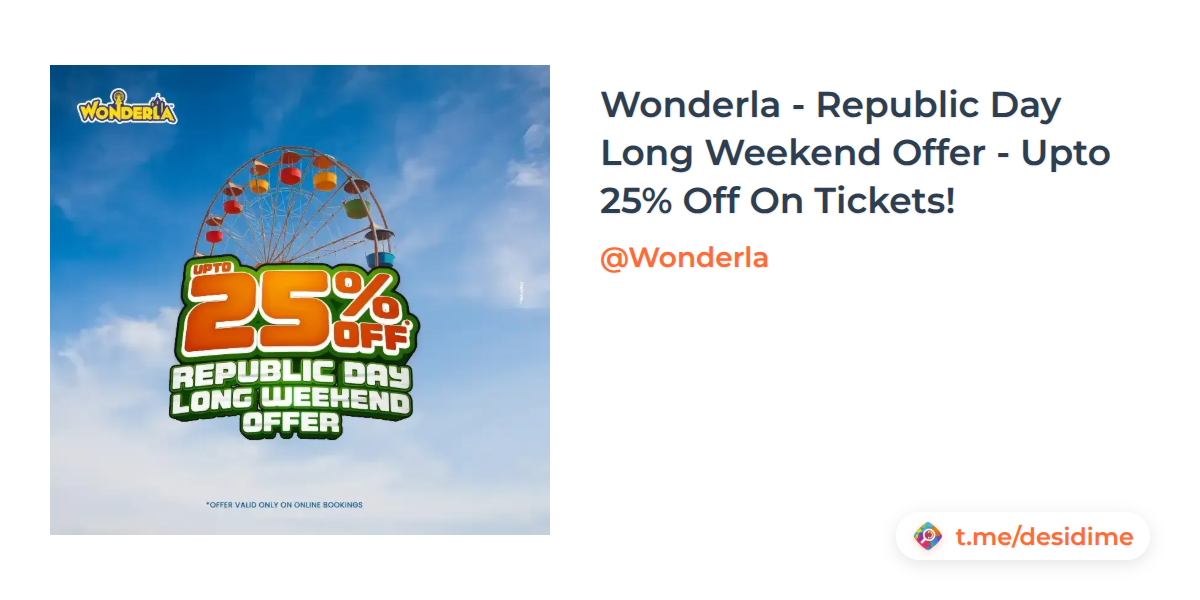 Wonderla - Republic Day Long Weekend Offer - Upto 25% Off On Tickets!