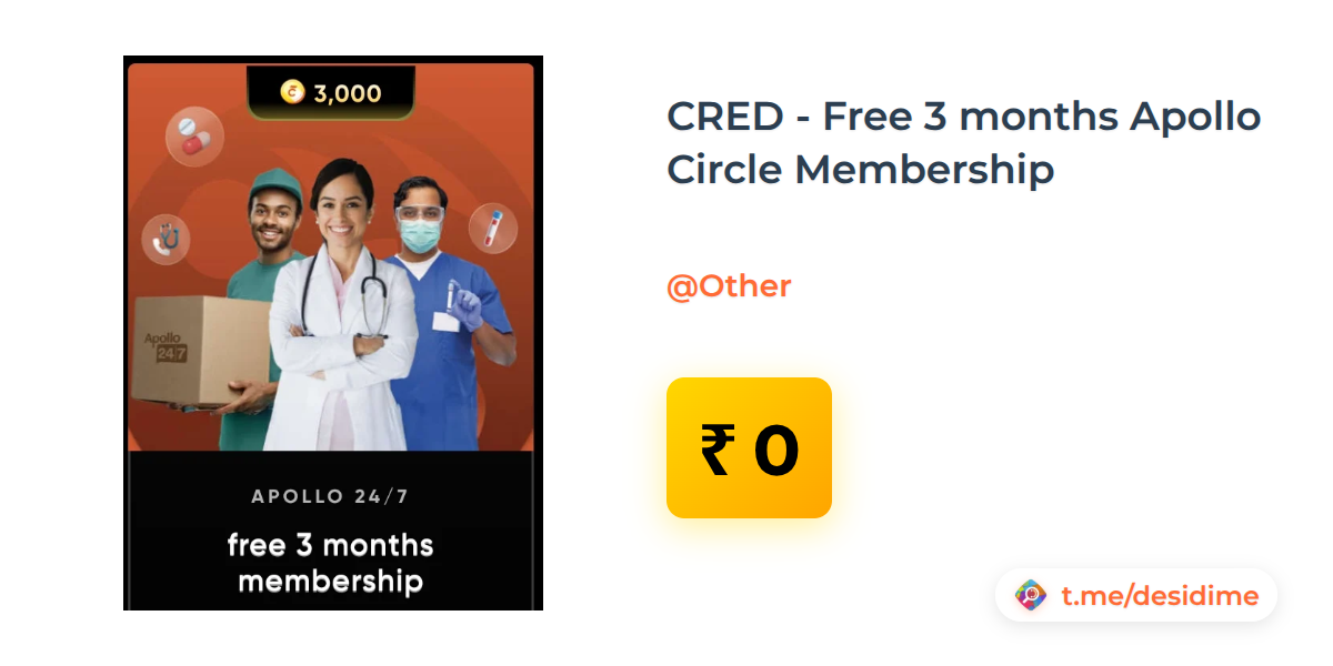 CRED - Free 3 months Apollo Circle Membership - Rs. 0