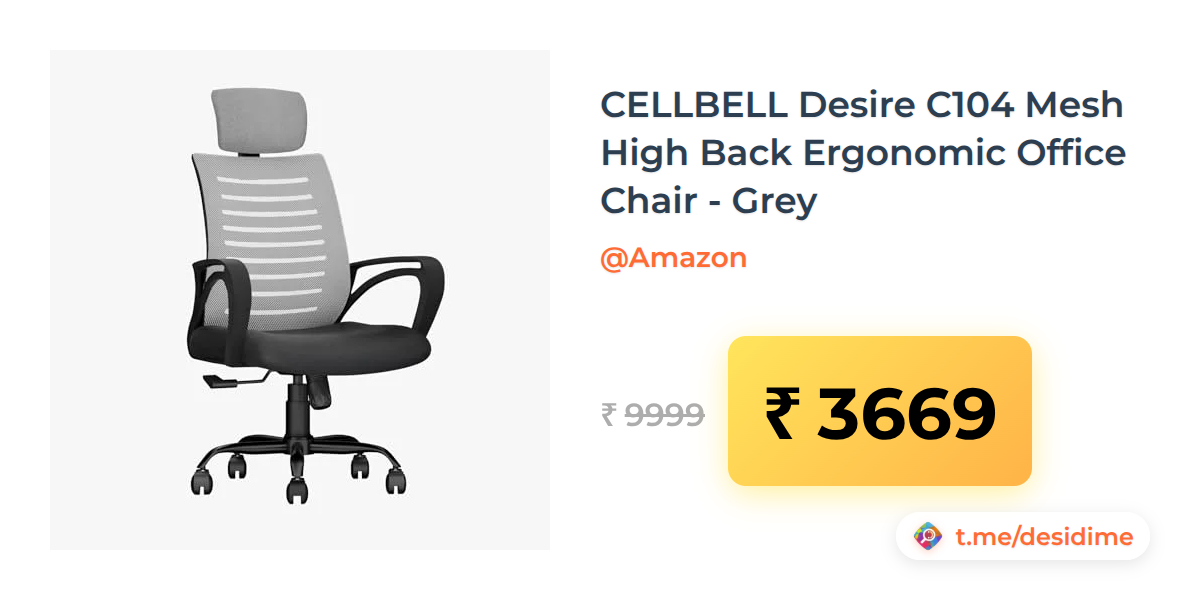 63% off on - CELLBELL Desire C104 Mesh High Back Ergonomic Office Chair - Grey - Rs. 3669