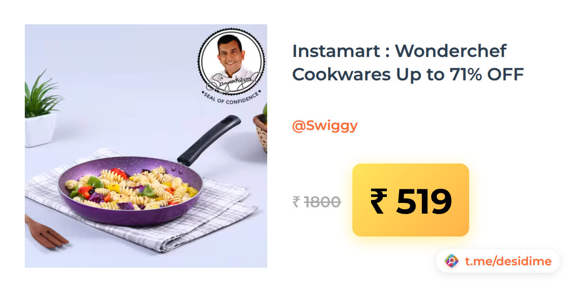 71% off on - Instamart : Wonderchef Cookwares Up to 71% OFF - Rs. 519