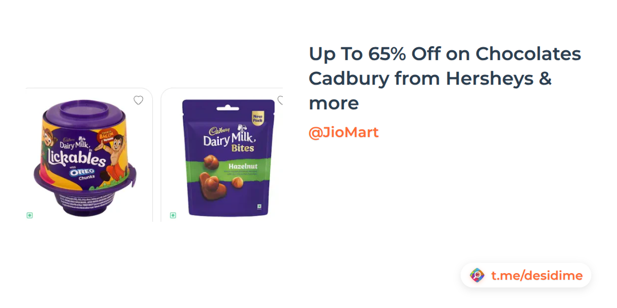 Up To 65% Off on Chocolates Cadbury from Hersheys & more