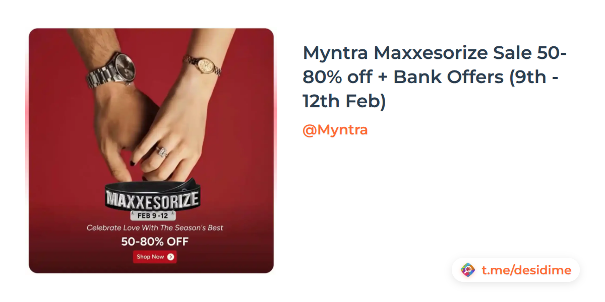 Myntra Maxxesorize Sale 50-80% off + Bank Offers (9th - 12th Feb)