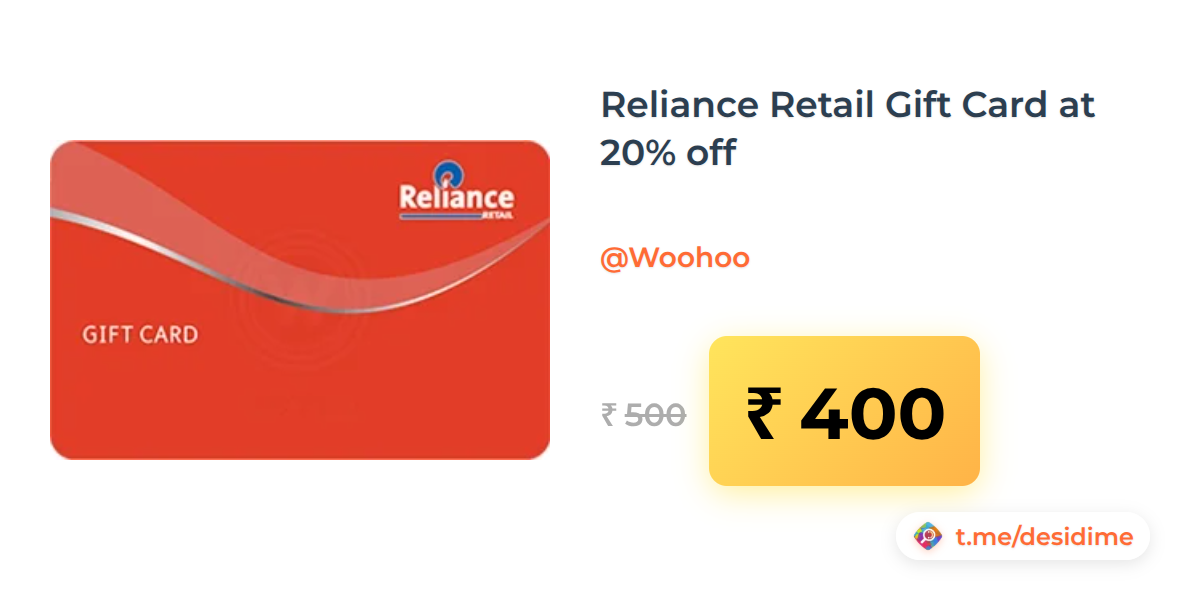 20% off on - Reliance Retail Gift Card at 20% off - Rs. 400