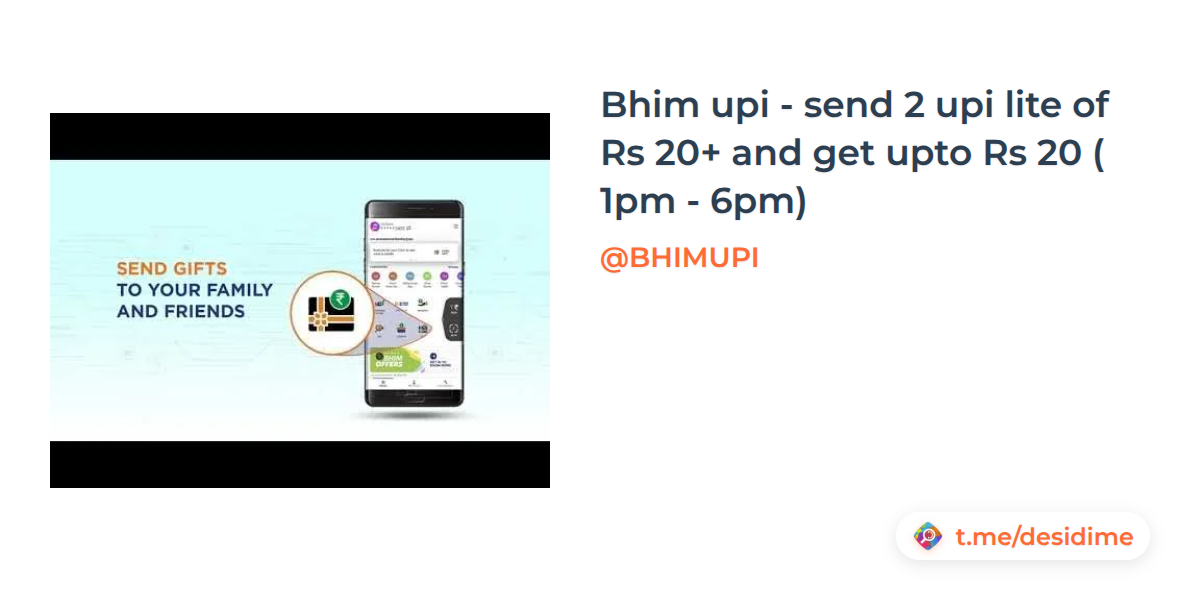 Bhim upi - send 2 upi lite of Rs 20+ and get upto Rs 20 ( 1pm - 6pm)