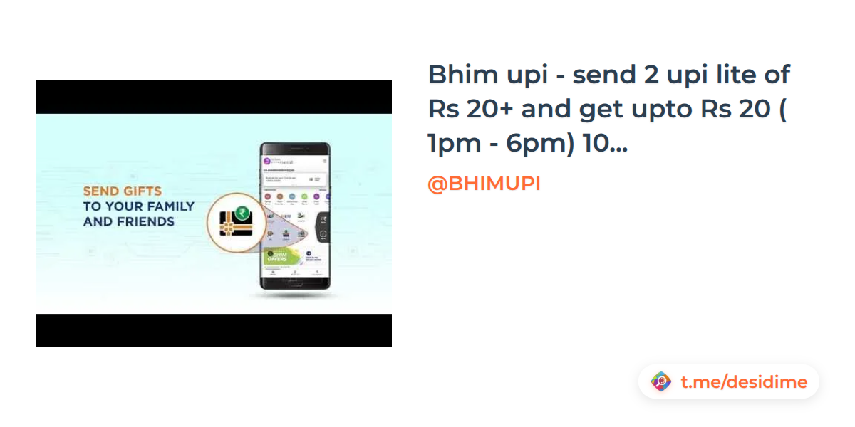 Bhim upi - send 2 upi lite of Rs 20+ and get upto Rs 20 ( 1pm - 6pm) 10 feb