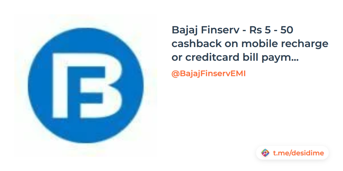 Bajaj Finserv - Rs 5 - 50 cashback on mobile recharge or creditcard bill payment (Valid 3 times ) Mov Rs 50 - (2pm - 5pm)