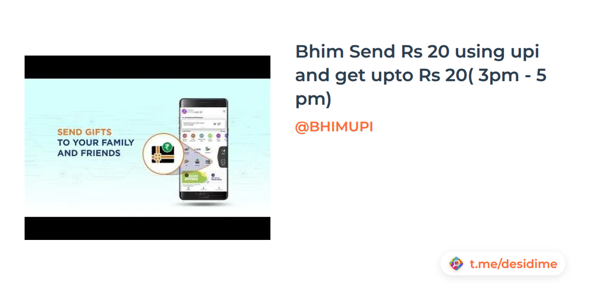 Bhim Send Rs 20 using upi and get upto Rs 20( 3pm - 5 pm)