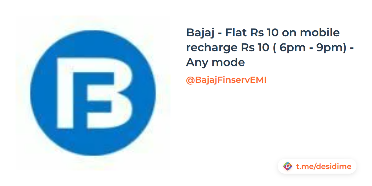 Bajaj - Flat Rs 10 on mobile recharge Rs 10 ( 6pm - 9pm) - Any mode