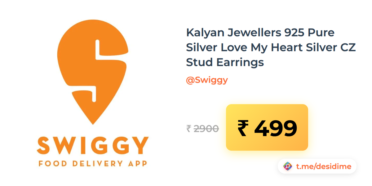 83% off on - Kalyan Jewellers 925 Pure Silver Love My Heart Silver CZ Stud Earrings - Rs. 499