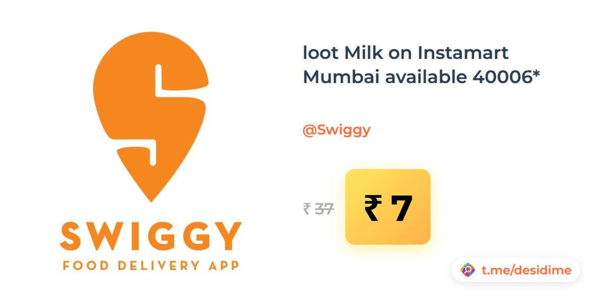 81% off on - loot Milk on Instamart Mumbai available 40006* - Rs. 7