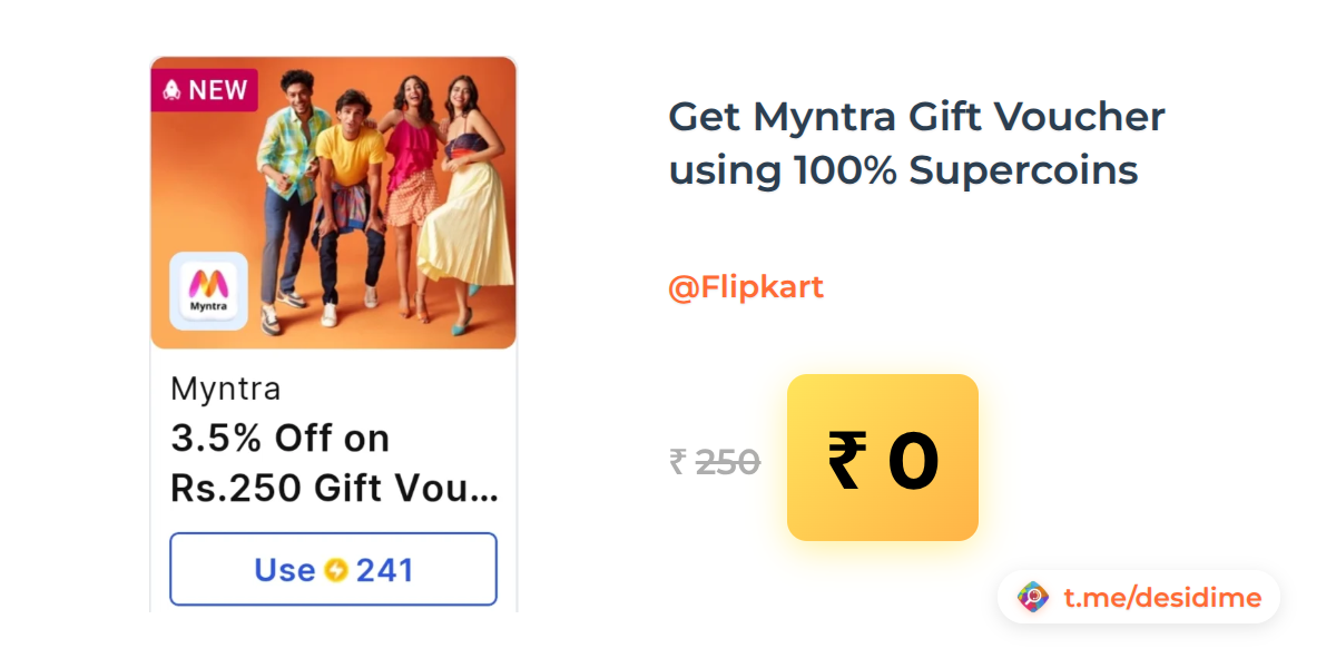 100% off on - Get Myntra Gift Voucher using 100% Supercoins - Rs. 0