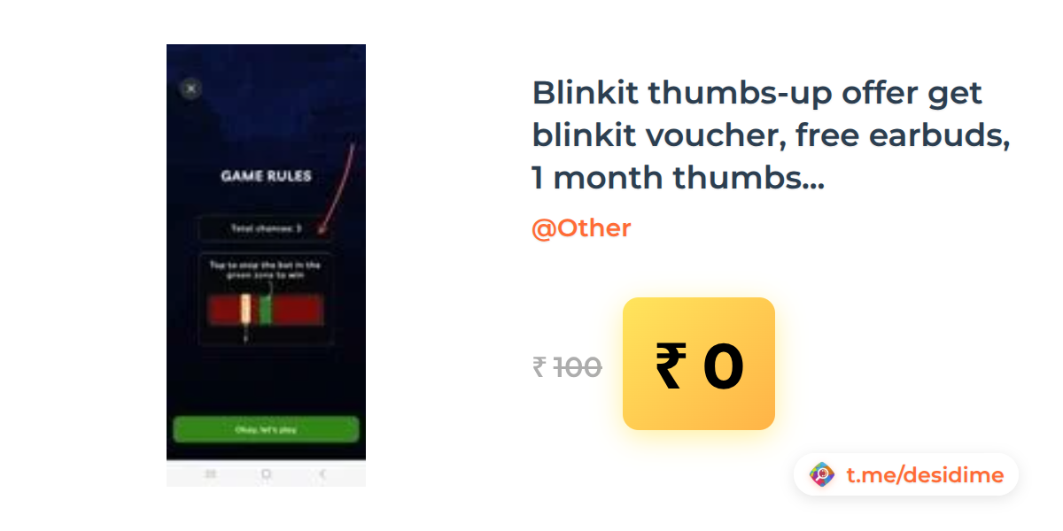 100% off on - Blinkit thumbs-up offer get blinkit voucher, free earbuds, 1 month thumbs up supply, ticket for t20 - Rs. 0