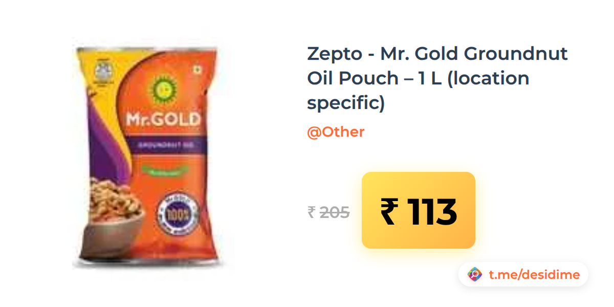 45% off on - Zepto - Mr. Gold Groundnut Oil Pouch – 1 L (location specific) - Rs. 113