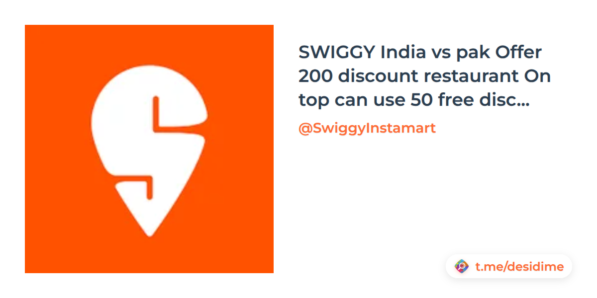 SWIGGY India vs pak Offer 200 discount restaurant On top can use 50 free discount on Order min 249/349 above