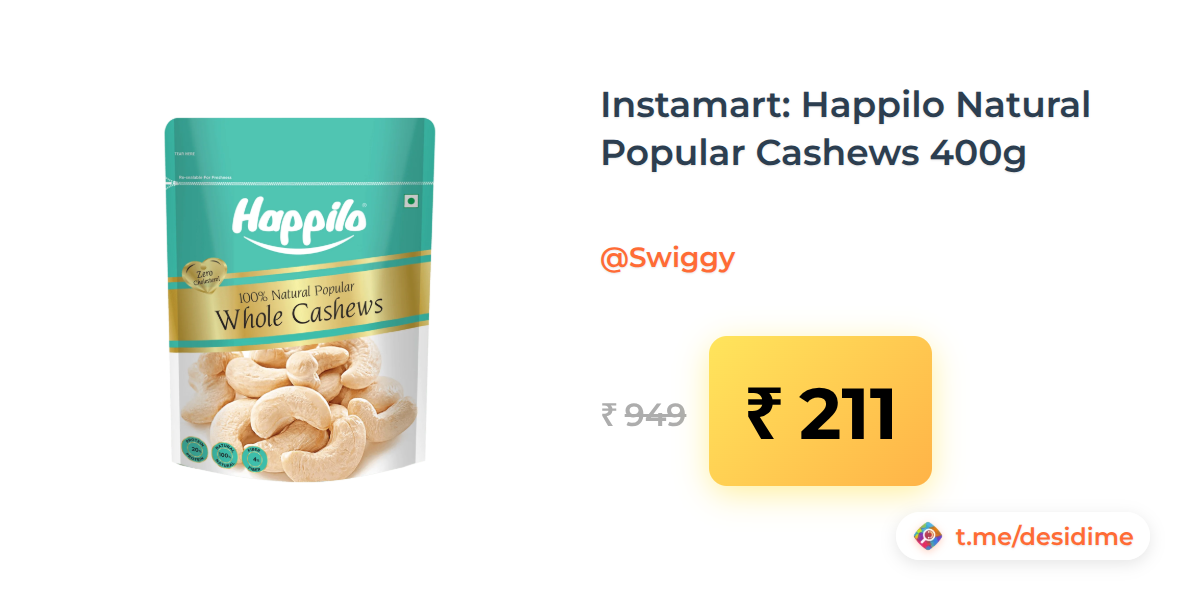 78% off on - Instamart: Happilo Natural Popular Cashews 400g - Rs. 211