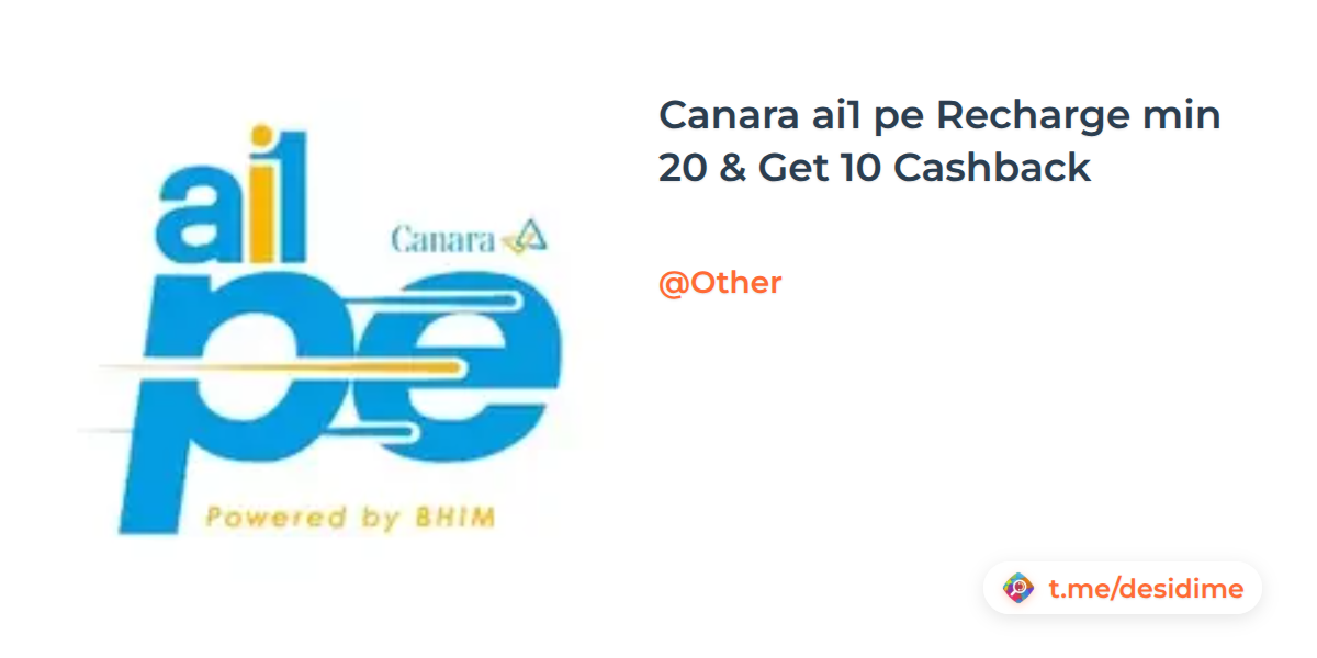 Canara ai1 pe Recharge min 20 & Get 10 Cashback