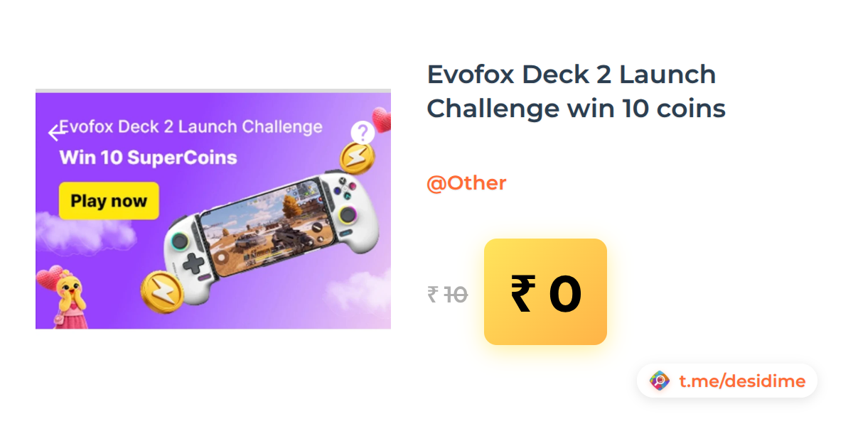 100% off on - Evofox Deck 2 Launch Challenge win 10 coins - Rs. 0