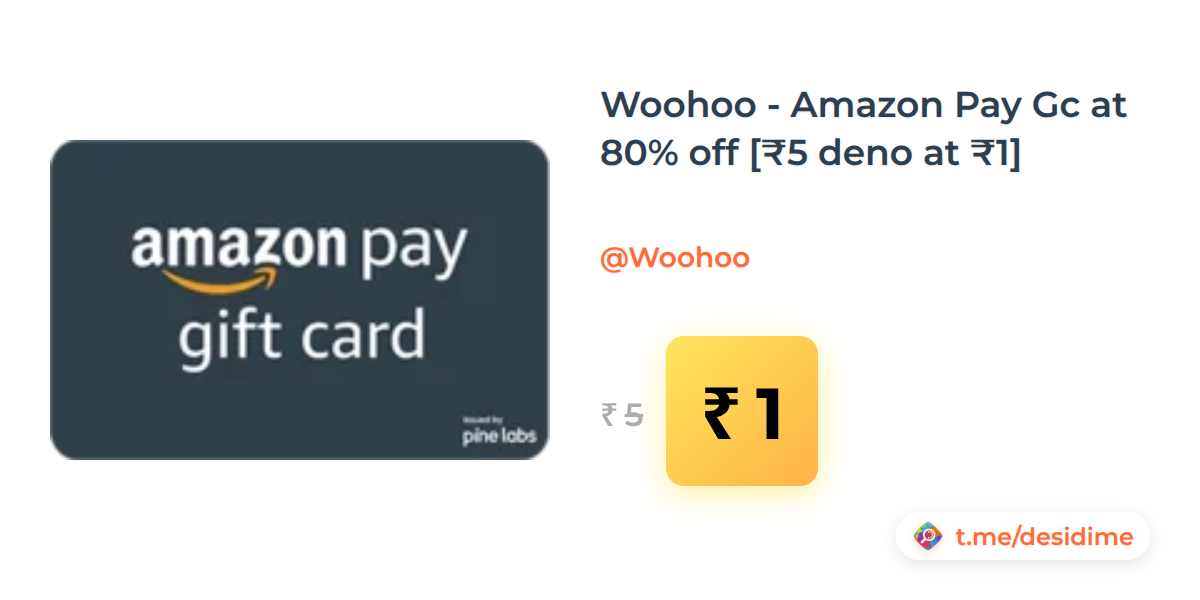 80% off on - Woohoo - Amazon Pay Gc at 80% off [₹5 deno at ₹1] - Rs. 1