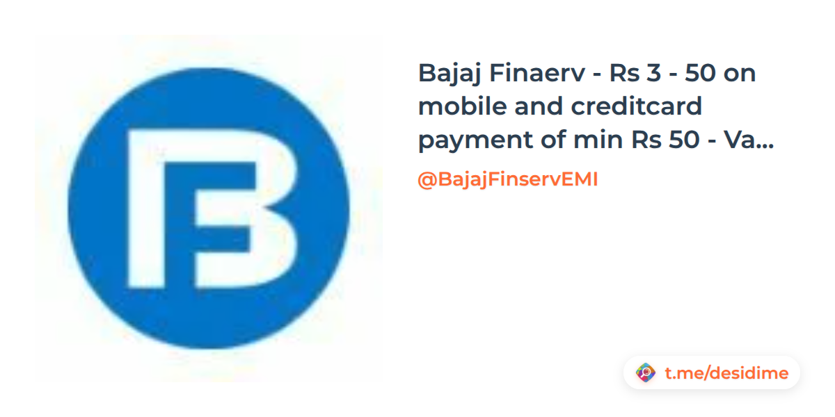 Bajaj Finaerv - Rs 3 - 50 on mobile and creditcard payment of min Rs 50 - Valid 3 times ( 2pm - 5pm )