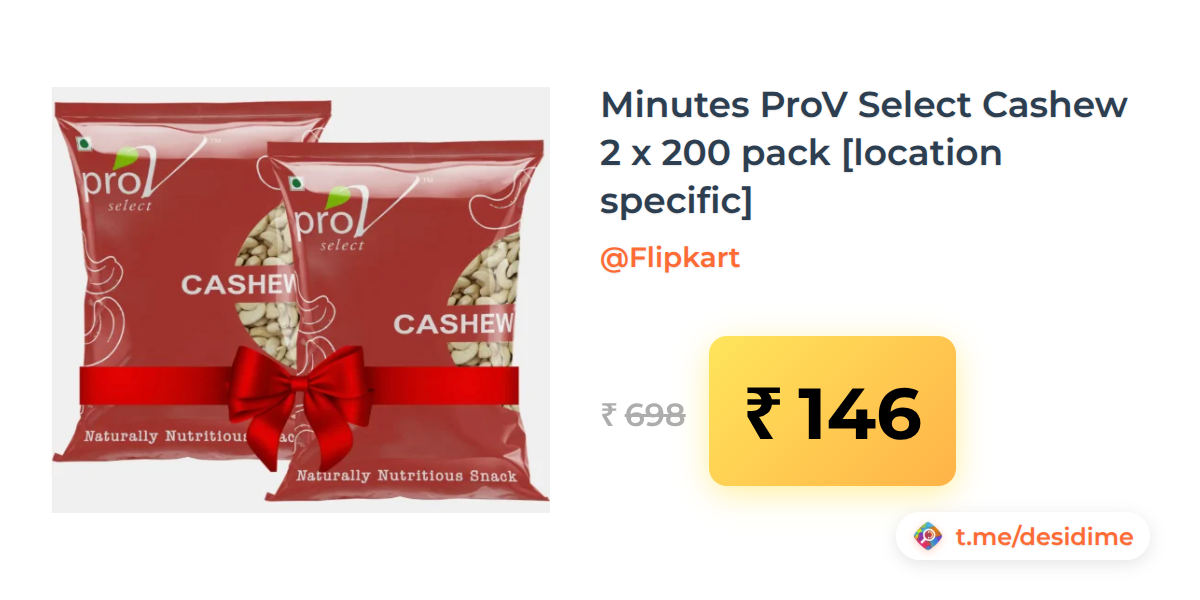79% off on - Minutes ProV Select Cashew 2 x 200 pack [location specific] - Rs. 146