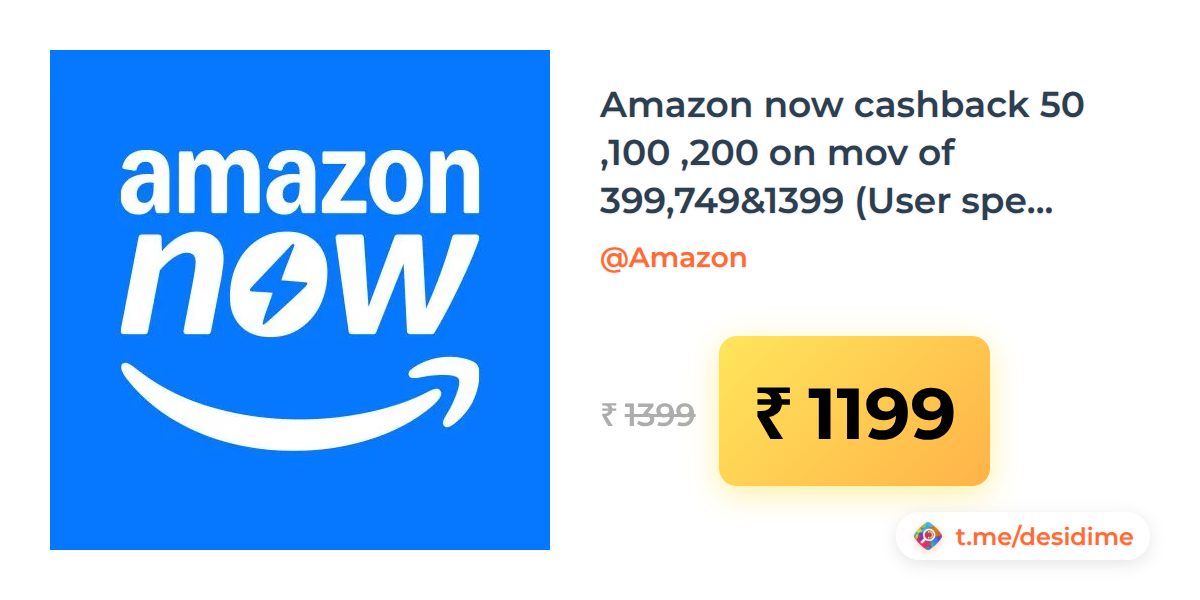 14% off on - Amazon now cashback 50 ,100 ,200 on mov of 399,749&1399 (User specific) - Rs. 1199