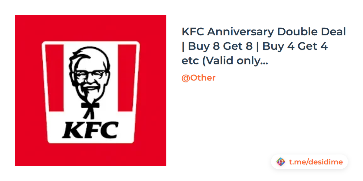 KFC Anniversary Double Deal | Buy 8 Get 8 | Buy 4 Get 4 etc (Valid only today)