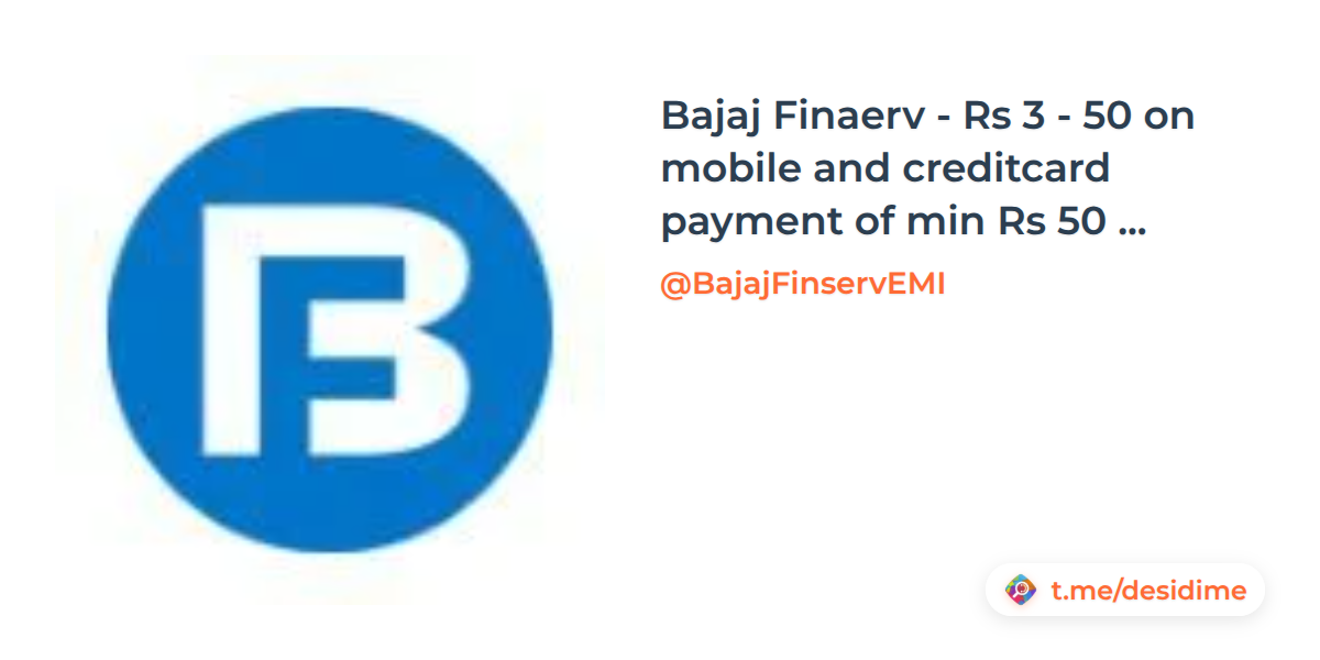 Bajaj Finaerv - Rs 3 - 50 on mobile and creditcard payment of min Rs 50 - Valid 3 times ( 2pm - 5pm )