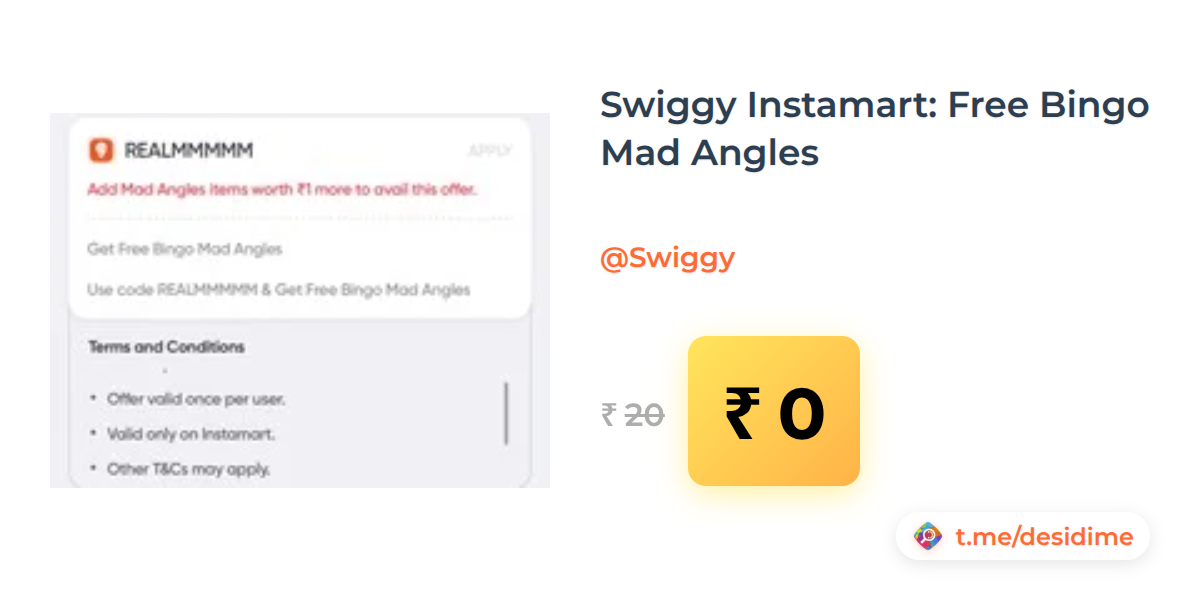 100% off on - Swiggy Instamart: Free Bingo Mad Angles - Rs. 0
