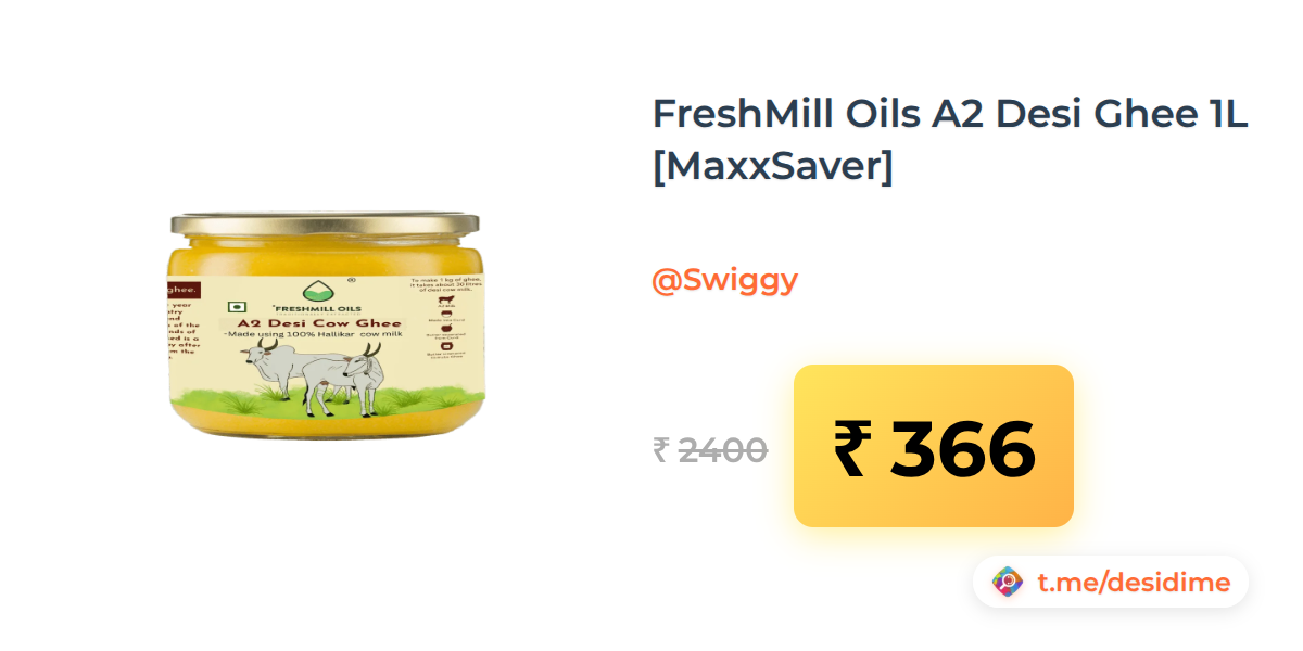 85% off on - FreshMill Oils A2 Desi Ghee 1L [MaxxSaver] - Rs. 366