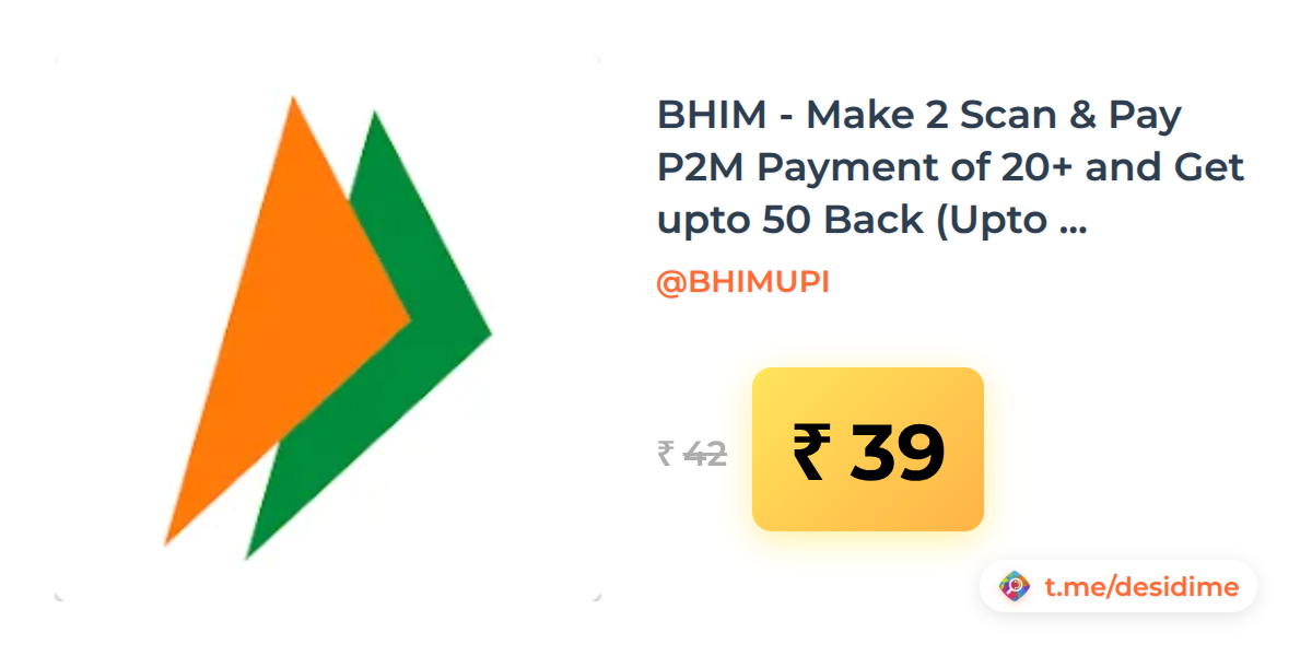 7% off on - BHIM - Make 2 Scan & Pay P2M Payment of 20+ and Get upto 50 Back (Upto 8 PM) (20 March 2026) - Rs. 39