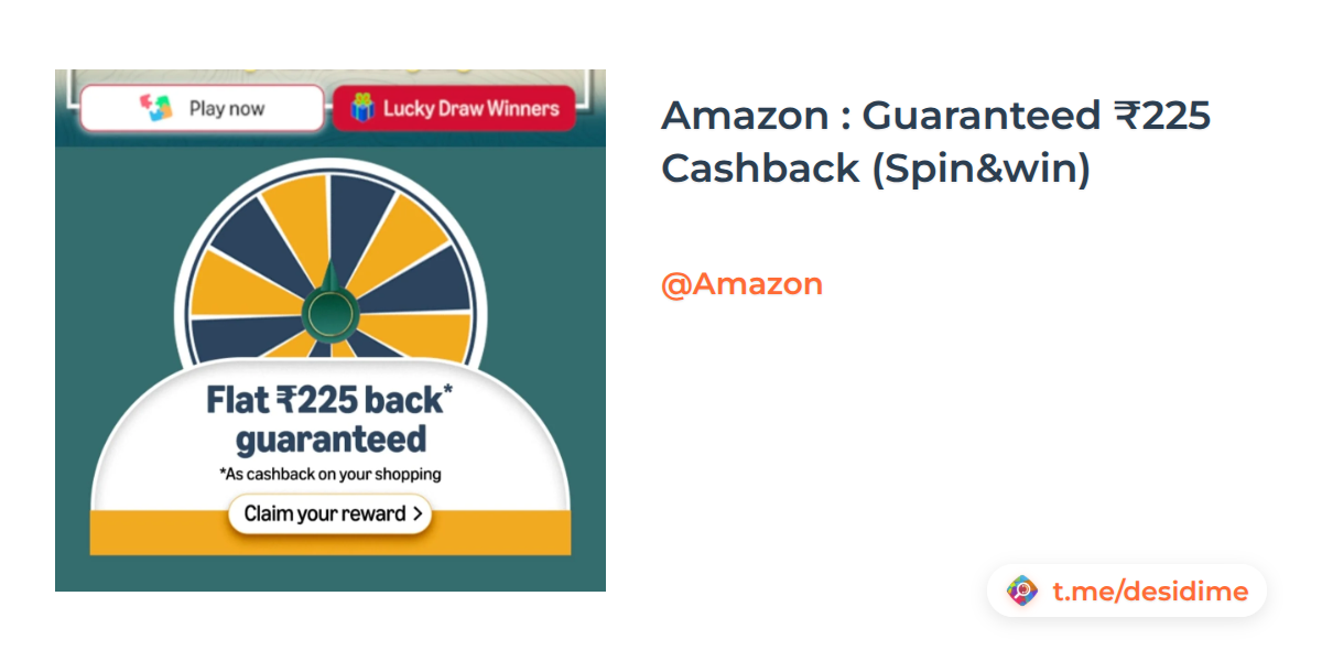 Amazon : Guaranteed ₹225 Cashback (Spin&win)