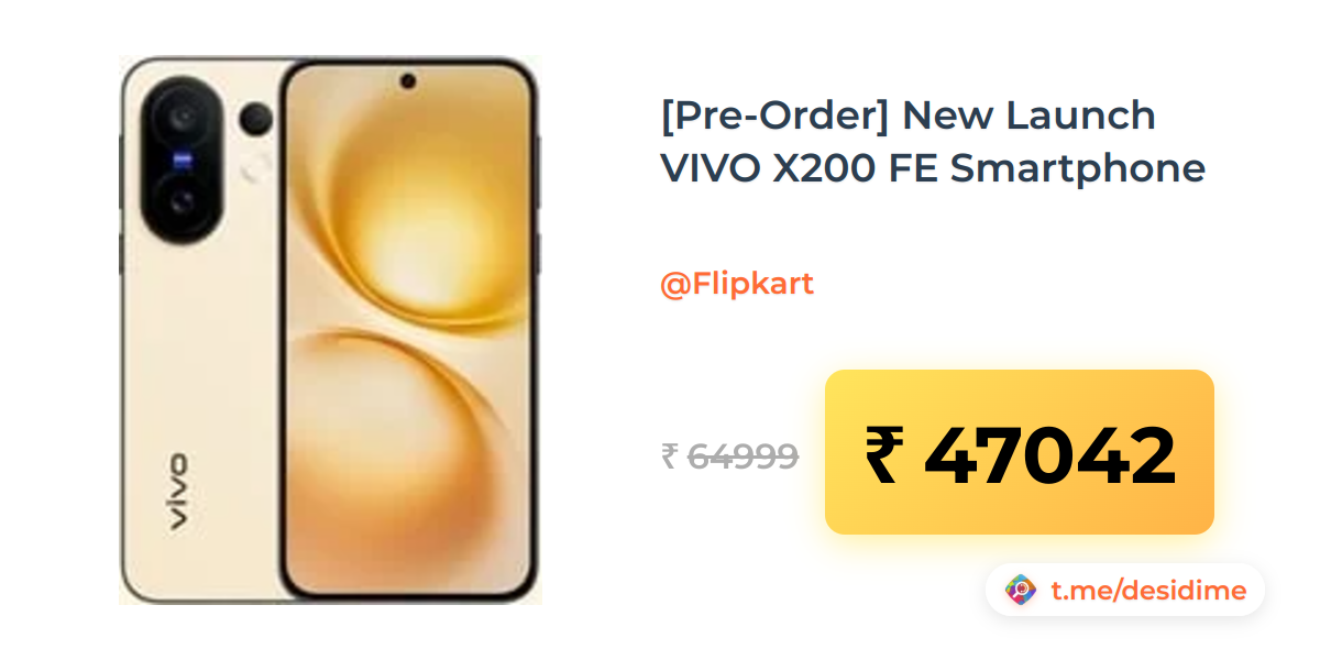 28% off on - [Pre-Order] New Launch VIVO X200 FE Smartphone - Rs. 47042