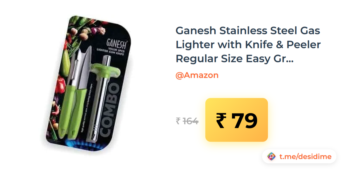52% off on - Ganesh Stainless Steel Gas Lighter with Knife & Peeler Regular Size Easy Grip, 3-Piece - Rs. 79