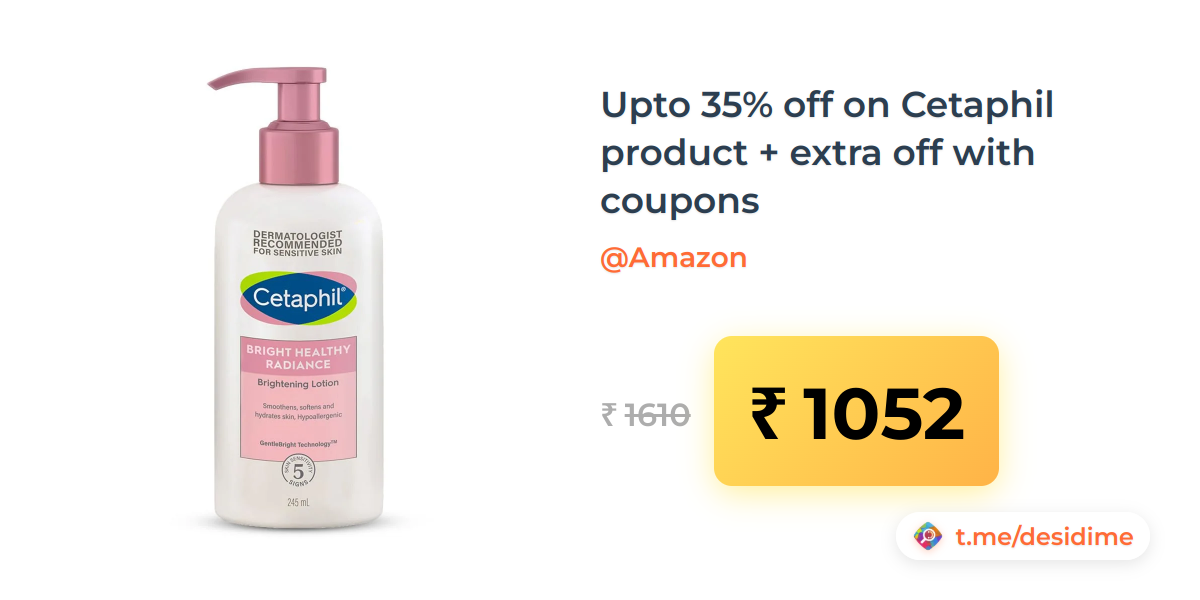 35% off on - Upto 35% off on Cetaphil product + extra off with coupons - Rs. 1052