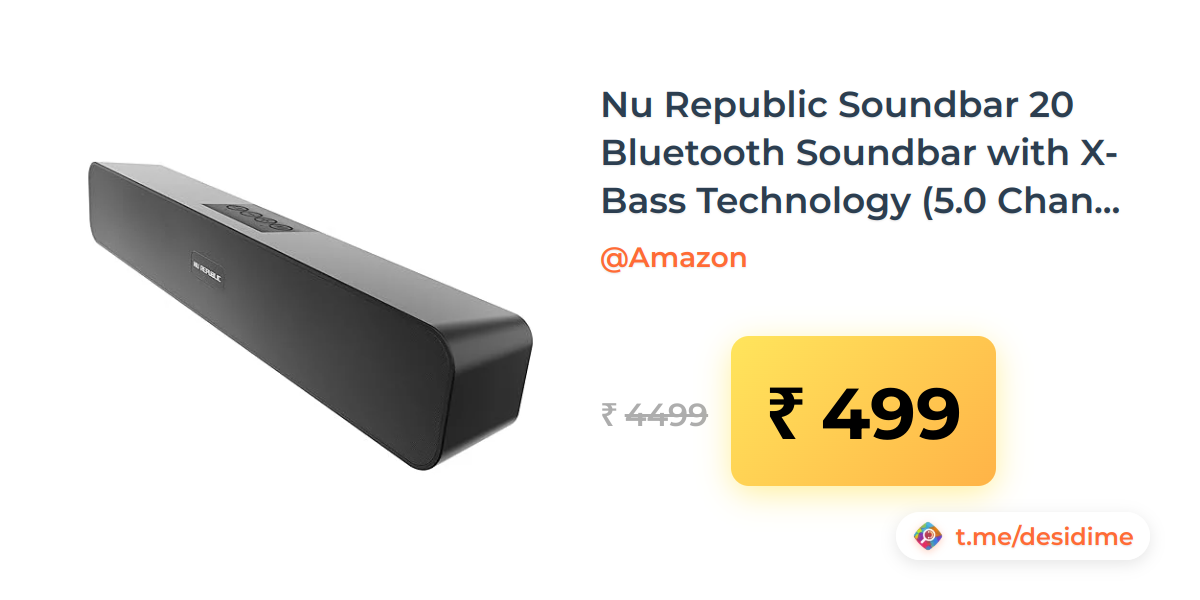 89% off on - Nu Republic Soundbar 20 Bluetooth Soundbar with X-Bass Technology (5.0 Channel) (Black) - Rs. 499