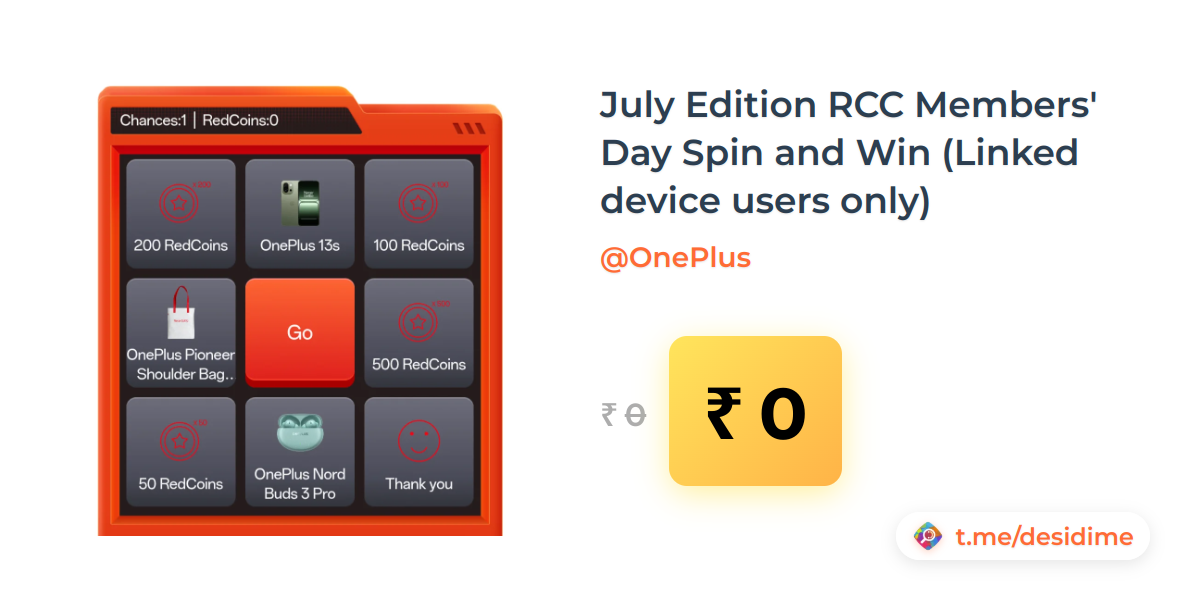 0% off on - July Edition RCC Members' Day Spin and Win (Linked device users only) - Rs. 0