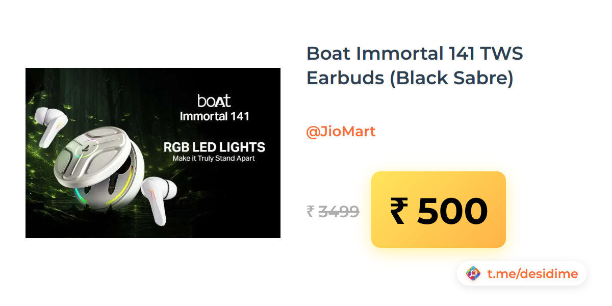 86% off on - Boat Immortal 141 TWS Earbuds (Black Sabre) - Rs. 500