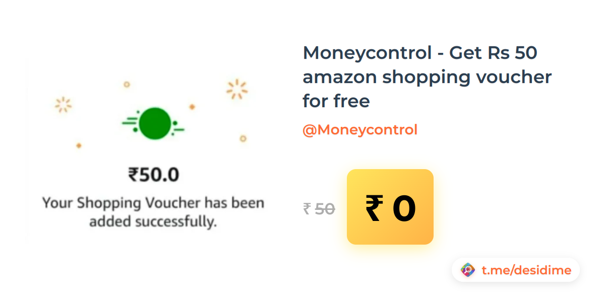 100% off on - Moneycontrol - Get Rs 50 amazon shopping voucher for free - Rs. 0