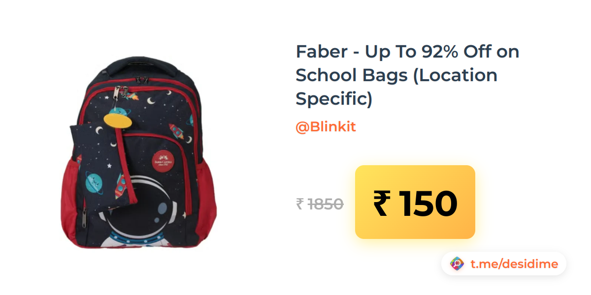 92% off on - Faber - Up To 92% Off on School Bags (Location Specific) - Rs. 150