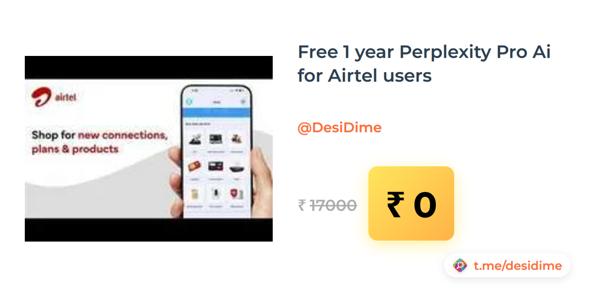 100% off on - Free 1 year Perplexity Pro Ai for Airtel users - Rs. 0