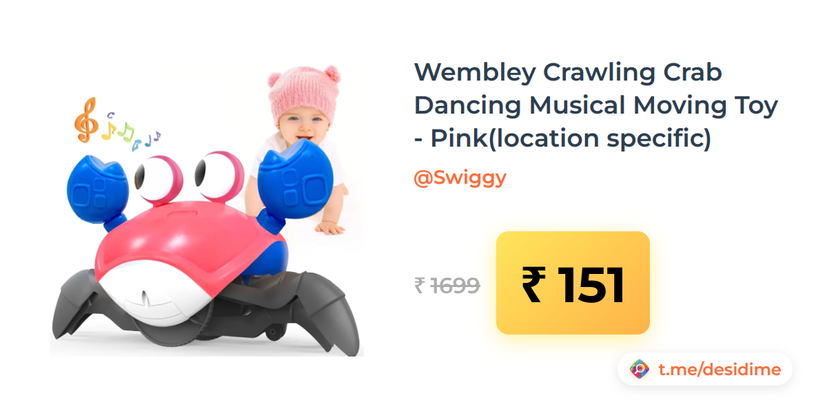 91% off on - Wembley Crawling Crab Dancing Musical Moving Toy - Pink(location specific) - Rs. 151
